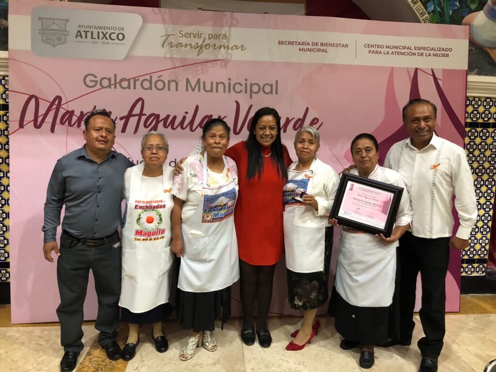 Atlixco, Puebla.- En el marco del Día Internacional de la Eliminación de la Violencia contra las Mujeres, la presidenta municipal de Atlixco, Ariadna Ayala, realizó reconocimiento póstumo con el galardón, “María Aguilar Velarde” a Margarita Cortés, fundadora de Enchiladas Maguito, quien en 1970 abrió la brecha que permitió a mas mujeres emprender en la actividad comercial representativa en gastronomía atlixquense, además de ser fuente de inspiración y trabajo para más mujeres de esa época.