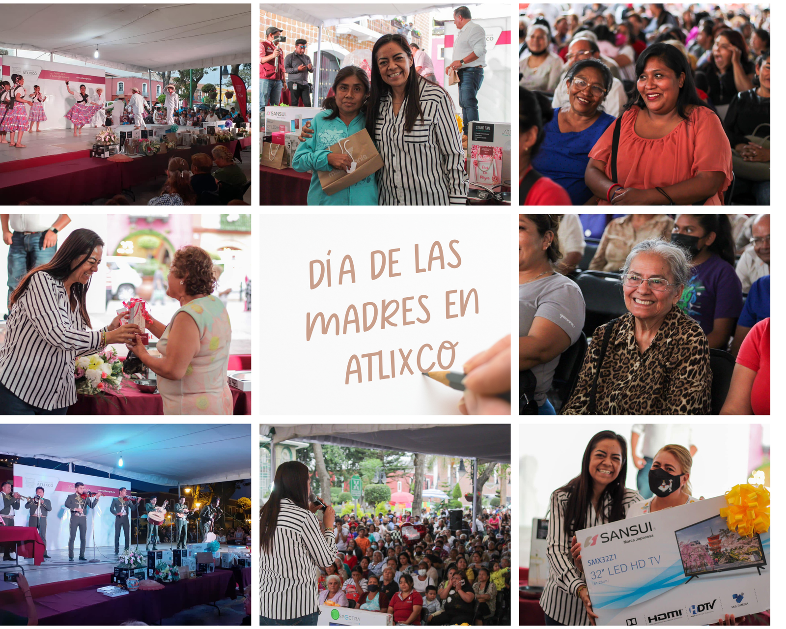Atlixco, Puebla.- La presidenta municipal de Atlixco, Ariadna Ayala, acompañada de servidores públicos, celebraron el “Día de las Madres”, con bocadillos, música y rifa de regalos a todas las mamis atlixquenses en el zócalo de la ciudad.