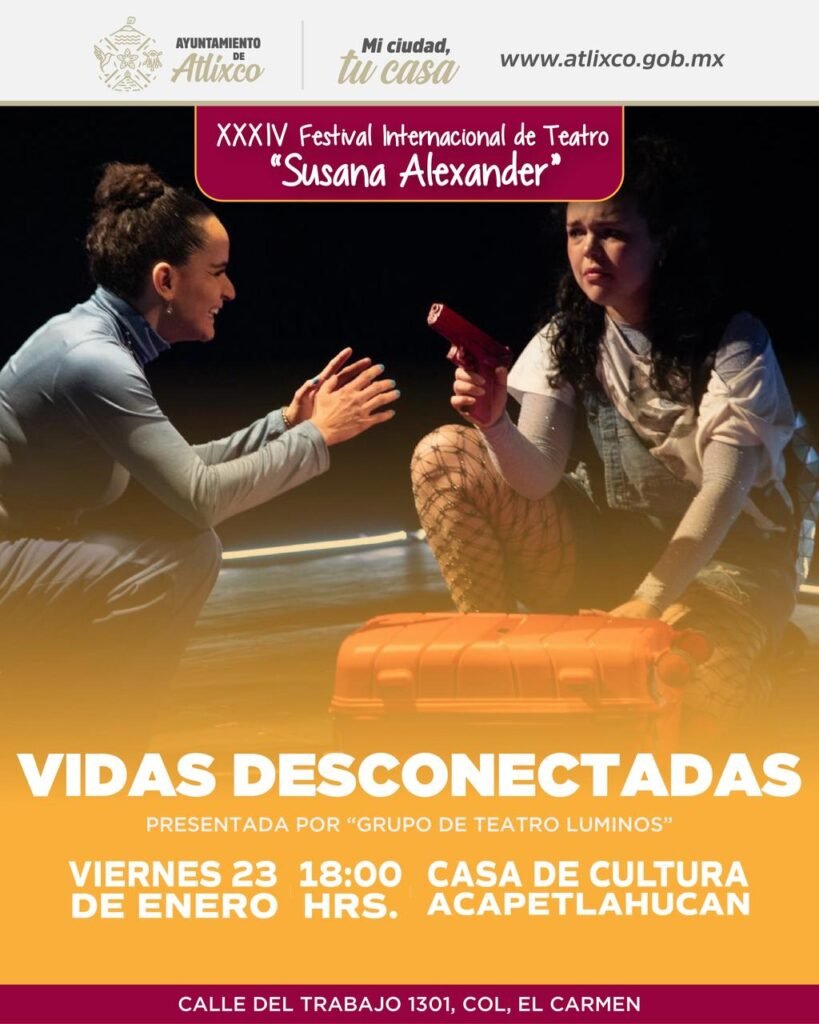 El festival dará inicio el viernes 23 de enero, a las 18:00 horas, con la puesta en escena “Vidas Desconectadas”, a cargo del Grupo de Teatro Luminos, marcando el arranque de una cartelera semanal abierta a todo el público.