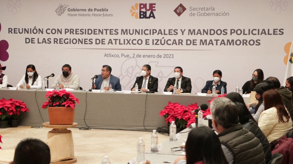 Atlixco, Puebla.- La presidenta municipal de Atlixco, Ariadna Ayala recibió al gobernador del Estado, Sergio Salomón Céspedes Peregrina en su gira inicial de trabajo de este 2023 por la región, siendo Atlixco el primer municipio donde se realizaron mesas de trabajo en materia de seguridad pública municipal y con los presidentes de la región, así como entrega de apoyos de programas de bienestar social, donde se beneficiaron un total de mil 302 Atlixquenses con apoyos de producto lácteo, módulos integrales alimentarios, módulos avícolas, estufas ecológicas y vivienda progresiva.