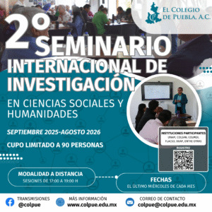 El Colegio de Puebla, A.C., dio inicio el pasado 24 de septiembre al Segundo Seminario Internacional de Investigación en Ciencias Sociales y Humanidades, el cual se desarrollará hasta el 26 de agosto de 2026