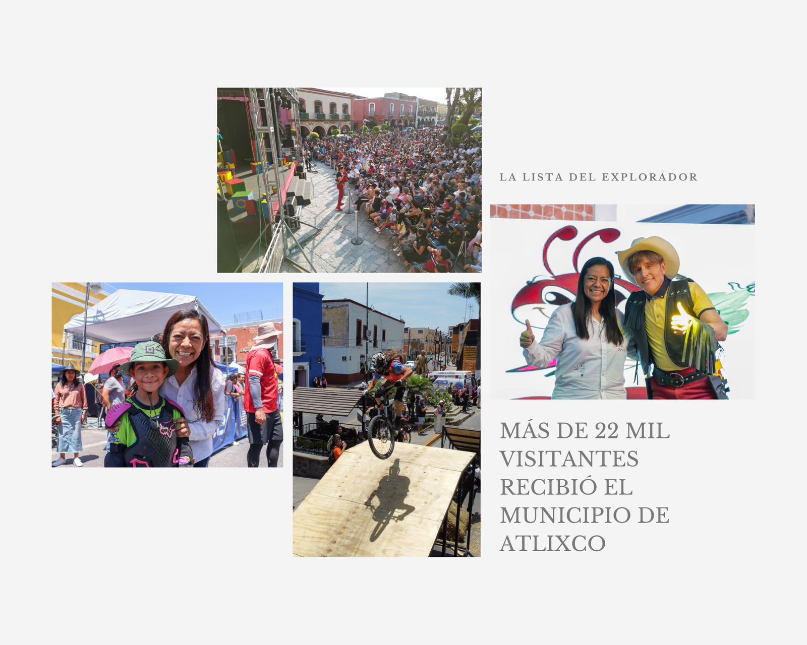 Atlixco, Puebla.- El Ayuntamiento de Atlixco que encabeza Ariadna Ayala, informó gran registro de visitas durante el primer puente de mayo, el cual contó con diversas actividades como la competencia de la Copa Estatal Downhill Urbano 2023, la celebración del Día de Niño con la presentación del actor y cuentacuentos Mario Iván Martínez, reuniendo a más de 22 mil visitantes.
