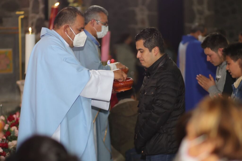 El presidente Lorenzo Rivera, la Titular del DIF Municipal, Rosy Nava, el secretario General, Ernesto Cortés y funcionarios del Ayuntamiento; presenciaron la Misa Solemne con la compañía del Arzobispo Domingo Díaz Martínez y el Pbro. Héctor Juárez Tapia.