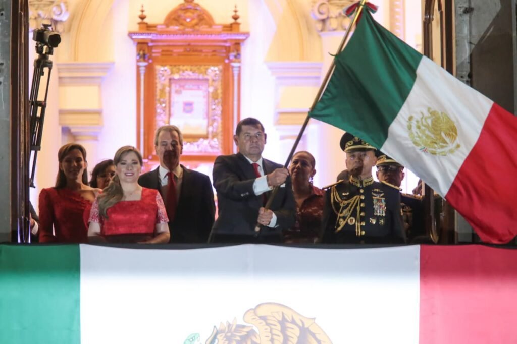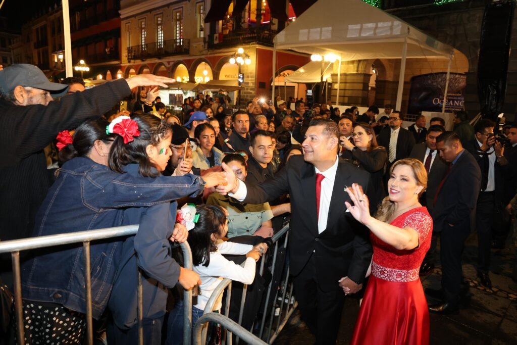 Ciudad de Puebla (Mex) En un ambiente de paz, de unión familiar y profundo orgullo patrio, desde Palacio Municipal, el gobernador de Puebla, Alejandro Armenta, presidió la Ceremonia del 215 Aniversario del Grito de Independencia, acompañado por su esposa, Ceci Arellano; el presidente municipal, José Chedraui Budib, y su esposa Mari Elise Budib.