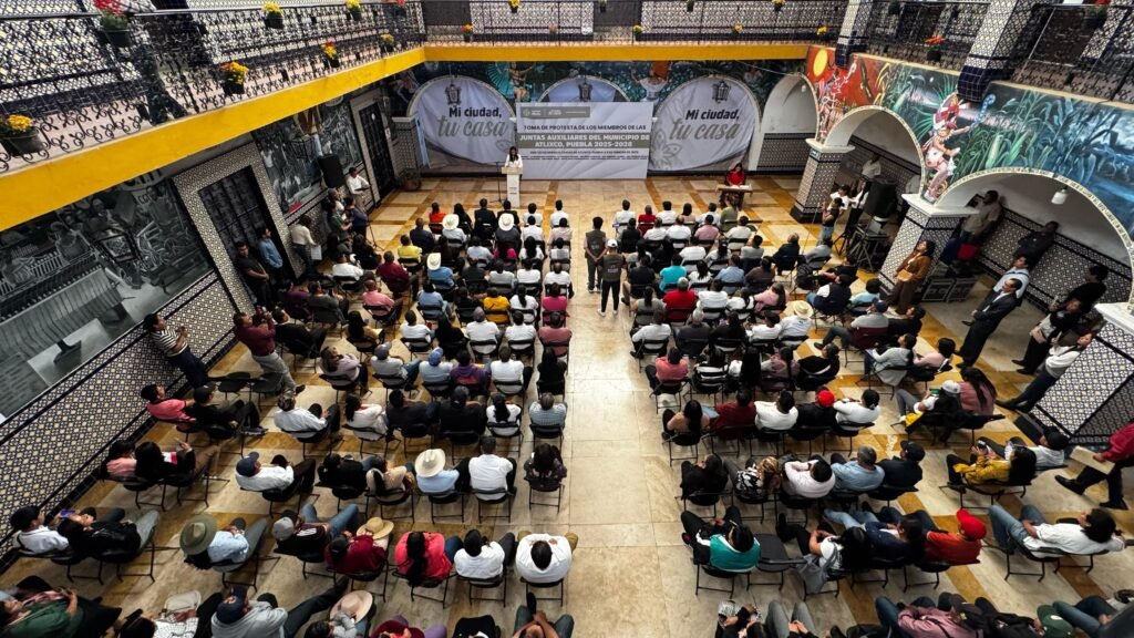 Atlixco, Puebla.- La presidenta municipal de Atlixco, Ariadna Ayala, tomó protesta a los 11 nuevos presidentes auxiliares, quienes se encargarán de representar a sus juntas auxiliares en el periodo 2025-2028.