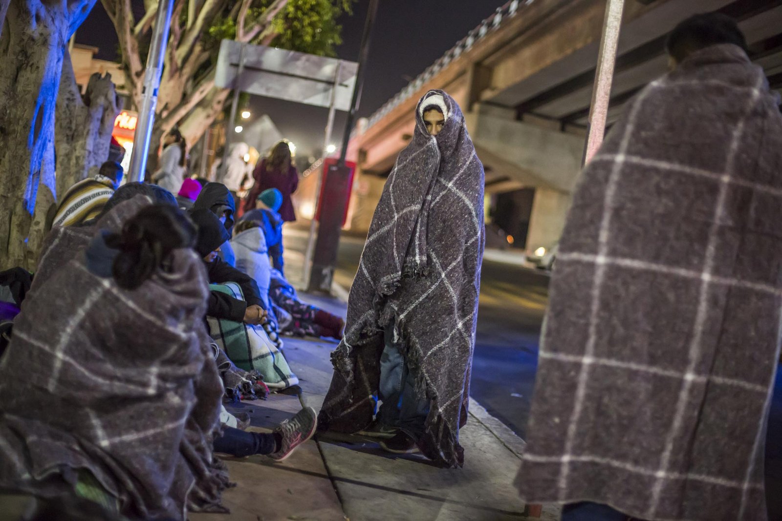 Un grupo de 300 migrantes desplazados por la violencia en Michoacán y Guerrero, pasan su quinta noche a la intemperie en la entrada peatonal de la garita internacional de El Chaparral, en Tijuana, Baja California, con la intención pedir asilo humanitario en Estados Unidos. Foto: Christian Serna/cuartoscuro.com