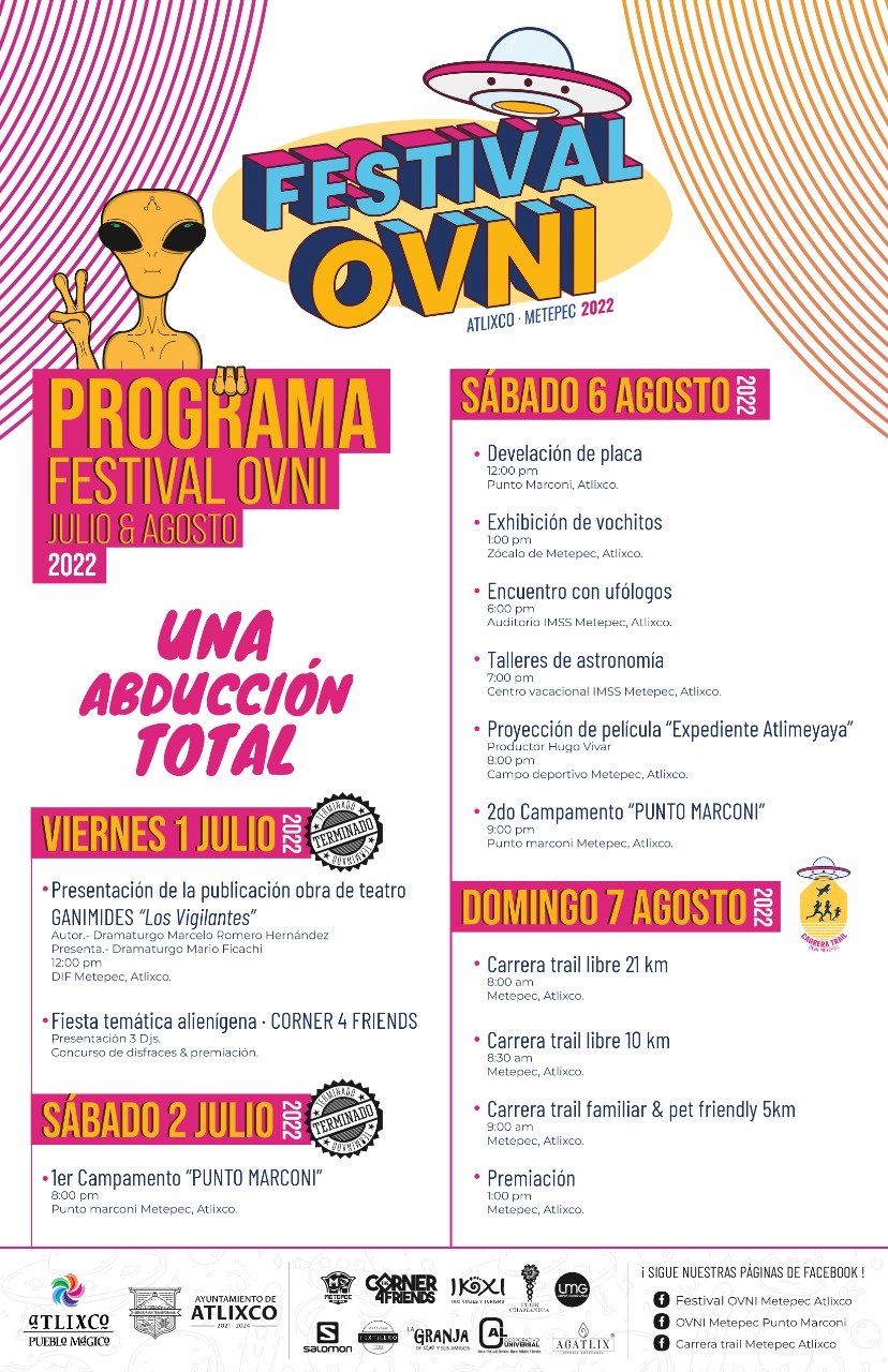Atlixco, Puebla.- A fin de continuar impulsando actividades para generar oferta turística, así como rescatar este lugar icónico de la zona limítrofe del municipio, el Ayuntamiento de Atlixco que encabeza Ariadna Ayala se une al esfuerzo de organizadores que impulsan por primera vez el «Festival OVNI Atlixco-Metepec», el cual se llevará a cabo el próximo 6 y 7 de agosto.