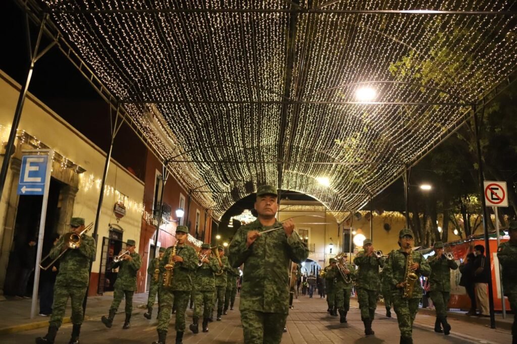 Tlaxcala, México.- La Secretaría de la Defensa Nacional (Sedena), a través de las Comandancias de la VI Región Militar y de la 23 Zona Militar, sorprendió a los capitalinos con un flashmob y un concierto navideño en el centro histórico de la ciudad de Tlaxcala.