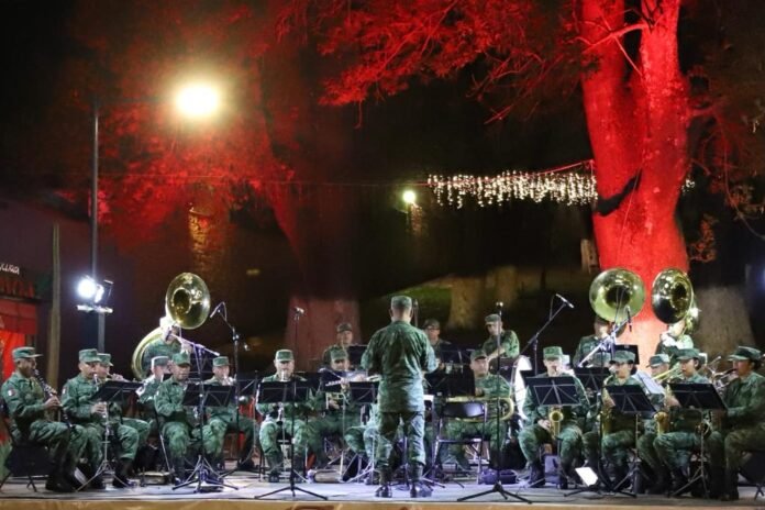 Como parte del compromiso de la gobernadora Lorena Cuéllar Cisneros, para generar espacios de convivencia y esparcimiento para las familias, así como acercar la cultura, este sábado la banda de música de la VI Región Militar “La Boticaria, Veracruz” deleitó a los asistentes con un repertorio sinfónico y popular.