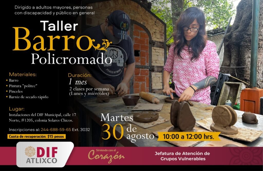 Atlixco, Puebla.- En un esfuerzo de impulsar el autoempleo y apoyar la economía los grupos vulnerables, el DIF Municipal de Atlixco del gobierno que encabeza, Ariadna Ayala, invita a los talleres de Cartonería, Barro de Policromado y Pintura en Tela, los cuales inician el próximo martes 30 de agosto.