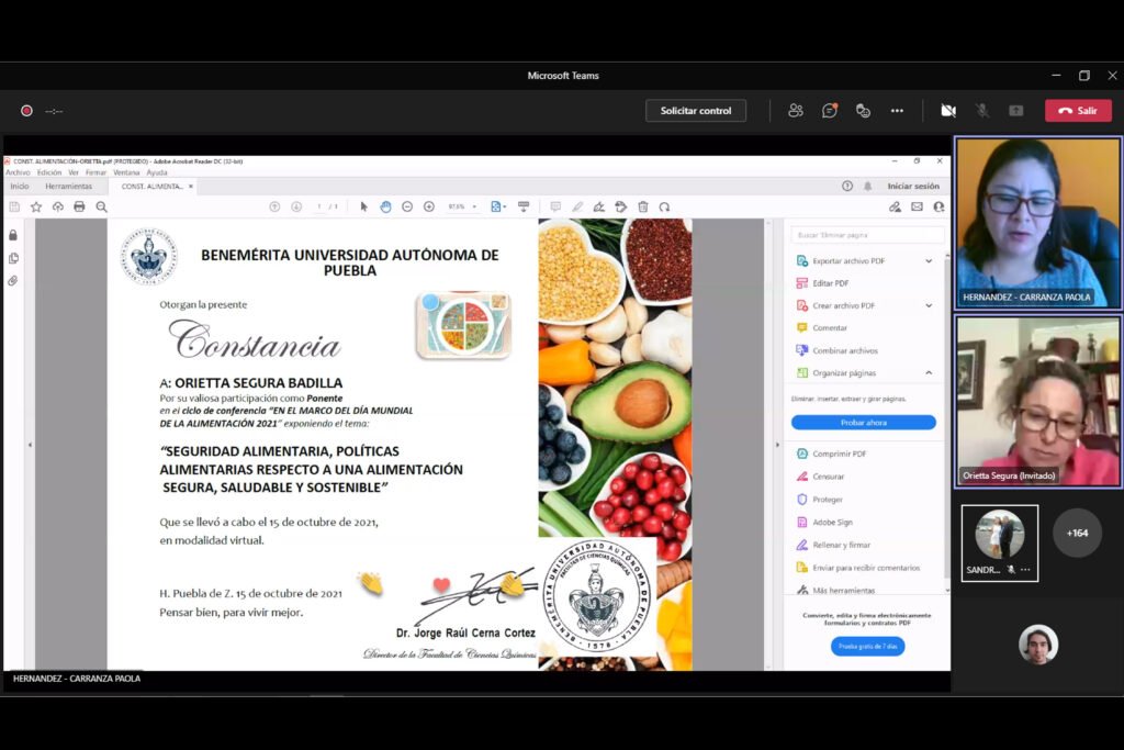 Para conmemorar el Día Mundial de la Alimentación, el Cuerpo Académico 043 “Bioquímica-Alimentos” llevó a cabo diversas actividades de manera virtual, con el objetivo de reflexionar sobre el tema. Se realizó un encuentro con los integrantes investigadores de este cuerpo académico, los doctores Raúl Ávila Sosa Sánchez, Carlos Ochoa Velasco, Addí Rhode Navarro Cruz y Paola Hernández Carranza, así como los maestros Obdulia Vera López y Martín Lazcano Hernández. Se presentaron videos temáticos del área de tecnología de alimentos, agroecología y nutrición, una exposición de carteles y juegos relacionados con el tema. También se efectuó un ciclo de conferencias a cargo de Gladys Quezada Figueroa y Orietta Segura Badilla, ambas de la Universidad del Bío-Bío, Chillán, en Chile; Ashuin Kammar-García, del Instituto Politécnico Nacional, y Héctor Ruiz Espinosa, de la Facultad de Ingeniería Química de la B.