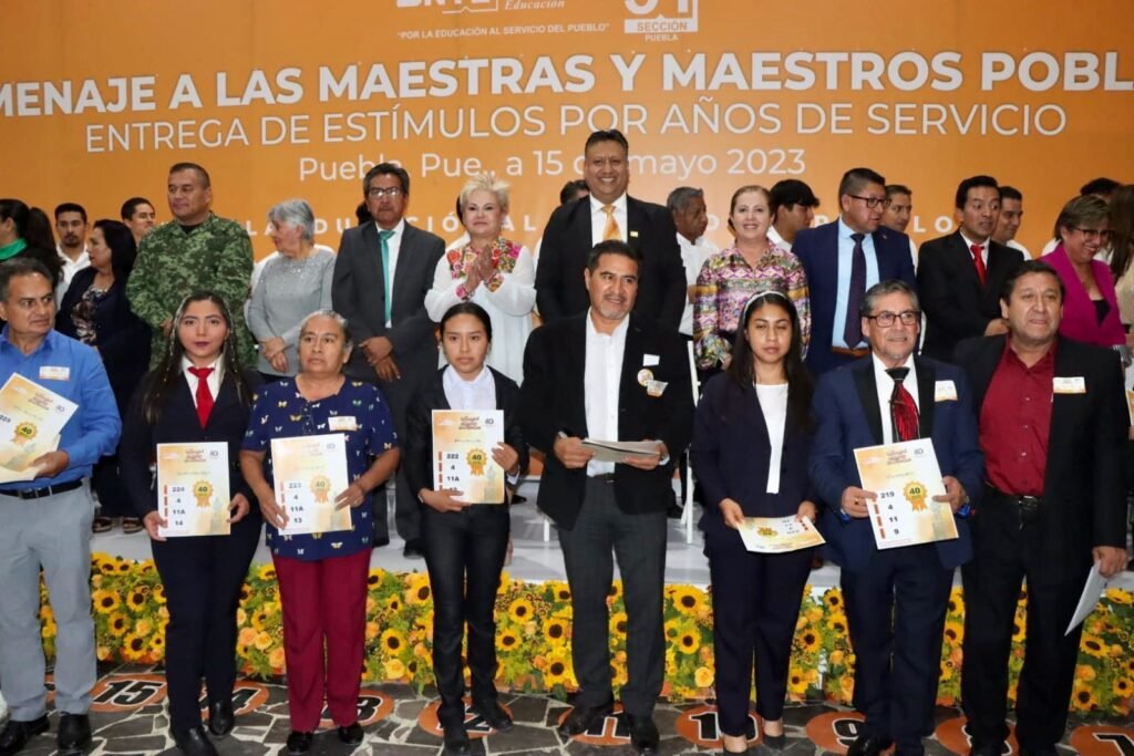 Ciudad de Puebla (Mex) En el marco del “Homenaje al Magisterio Estatal Poblano”, con motivo del día del maestro, organizado por la sección 51 del Sindicato Nacional de Trabajadores de la Educación (SNTE), el secretario general, Alfredo Gómez Palacios, entregó reconocimientos a un total de 2 mil 158 docentes de toda la entidad, quienes cumplieron de 20 a 75 años de servicio.