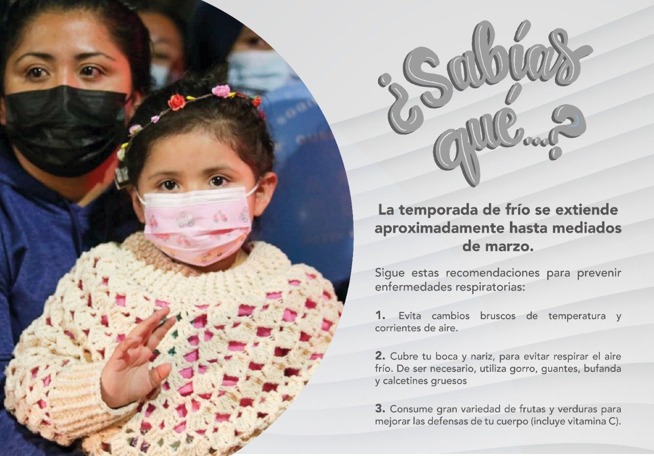 Protección Civil de Atlixco señaló que es importante el consumo suficiente de líquidos, al igual que gran variedad de frutas y verduras para mejorar las defensas del cuerpo, de igual forma invitó a continuar con el lavado de manos y uso de gel antibacterial; en caso de presentar fiebre u otros síntomas relacionados con las enfermedades respiratorias, se debe evitar la automedicación y acudir de inmediato con el médico.