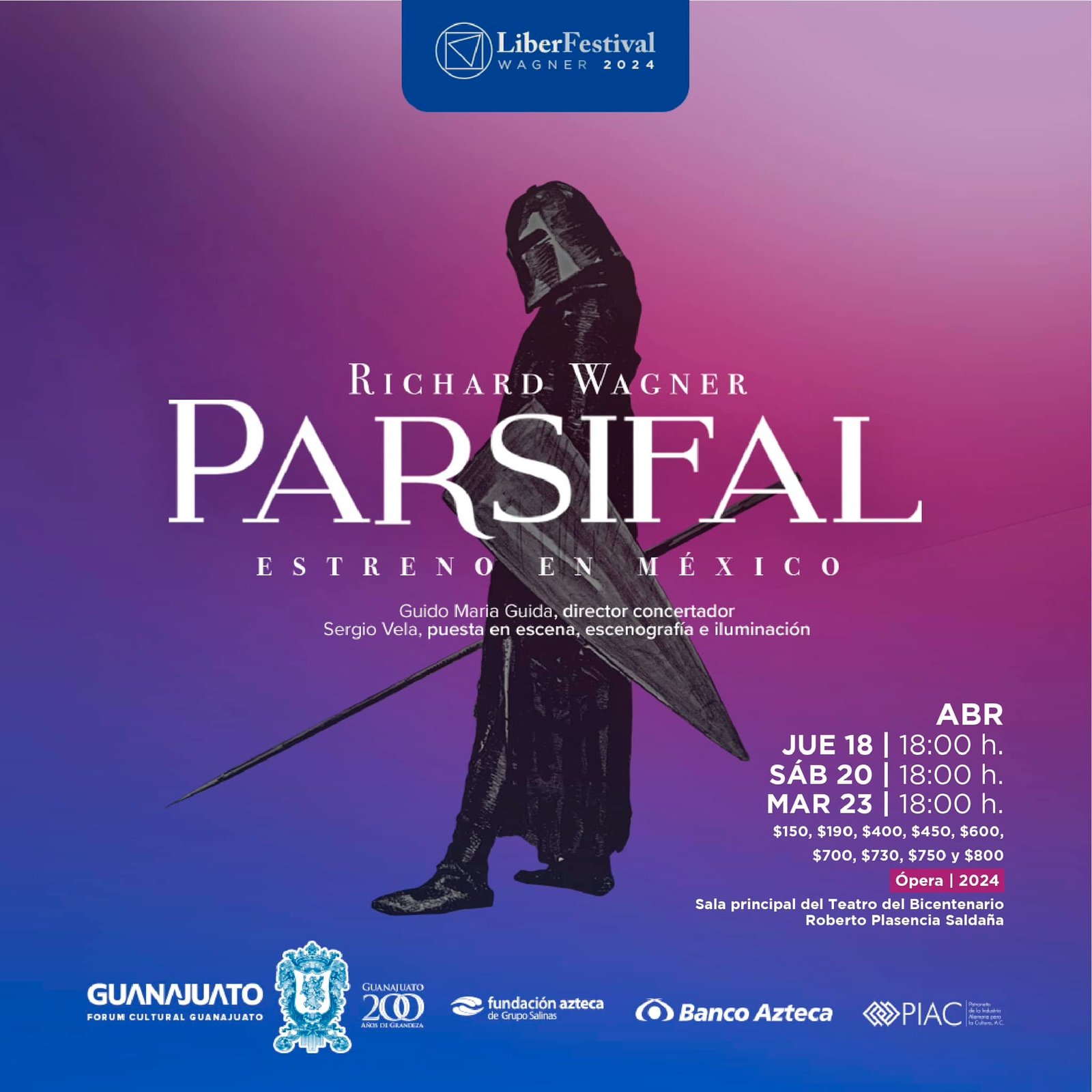 Será el jueves 18 de abril a las 18:00 horas en el Teatro Bicentenario cuando se estrene la ópera “Parsifal”, la última obra maestra de Wagner, que es su testamento artístico y una de las más extraordinarias creaciones en la historia de la cultura occidental.