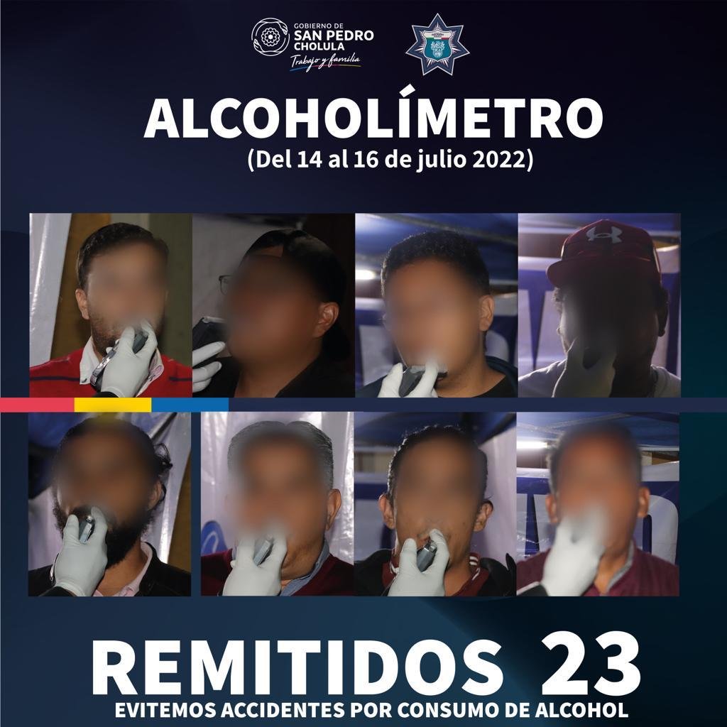 San Pedro Cholula, Pue.- Como resultado del Operativo Alcoholímetro, implementado cada fin de semana por la Secretaría de Seguridad Ciudadana, 23 personas fueron remitidas al Juzgado Calificador por conducir en segundo o tercer estado de ebriedad.