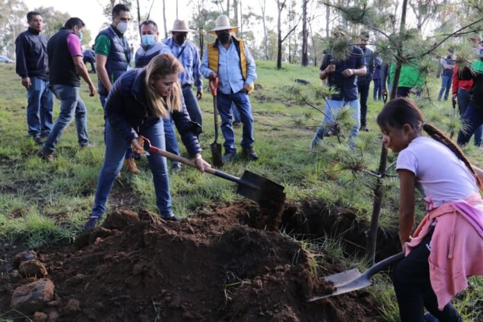 San Pedro Cholula, Pue.- Buscando preservar uno de los pulmones más importantes de la zona metropolitana de Puebla y gran espacio para el sano esparcimiento de poblanos y cholultecas, la presidenta Paola Angon encabezó la jornada de reforestación “Va por el pulmón Cholulteca”, en el Cerro Zapotecas.