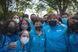 Finalmente, rodeada de los jóvenes deportistas, la Rectora se dijo entusiasmada de ver cómo muestran con gallardía su deseo por posicionar en alto a la universidad. La doctora Lilia Cedillo les deseó el mayor de los éxitos y advirtió que, independientemente de los resultados, la BUAP ya se siente orgullosa de su desempeño.