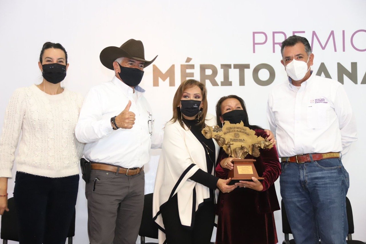 Tlaxcala, Tlax.- La gobernadora Lorena Cuéllar Cisneros entregó el Premio Estatal al Mérito Ganadero 2021 a Justina Rosete Meléndez, propietaria de una granja integral con uso de ecotecnias dedicada a la cría de puercos y aves de traspatio, que desde hace más de diez años opera en el municipio de Chiautempan.