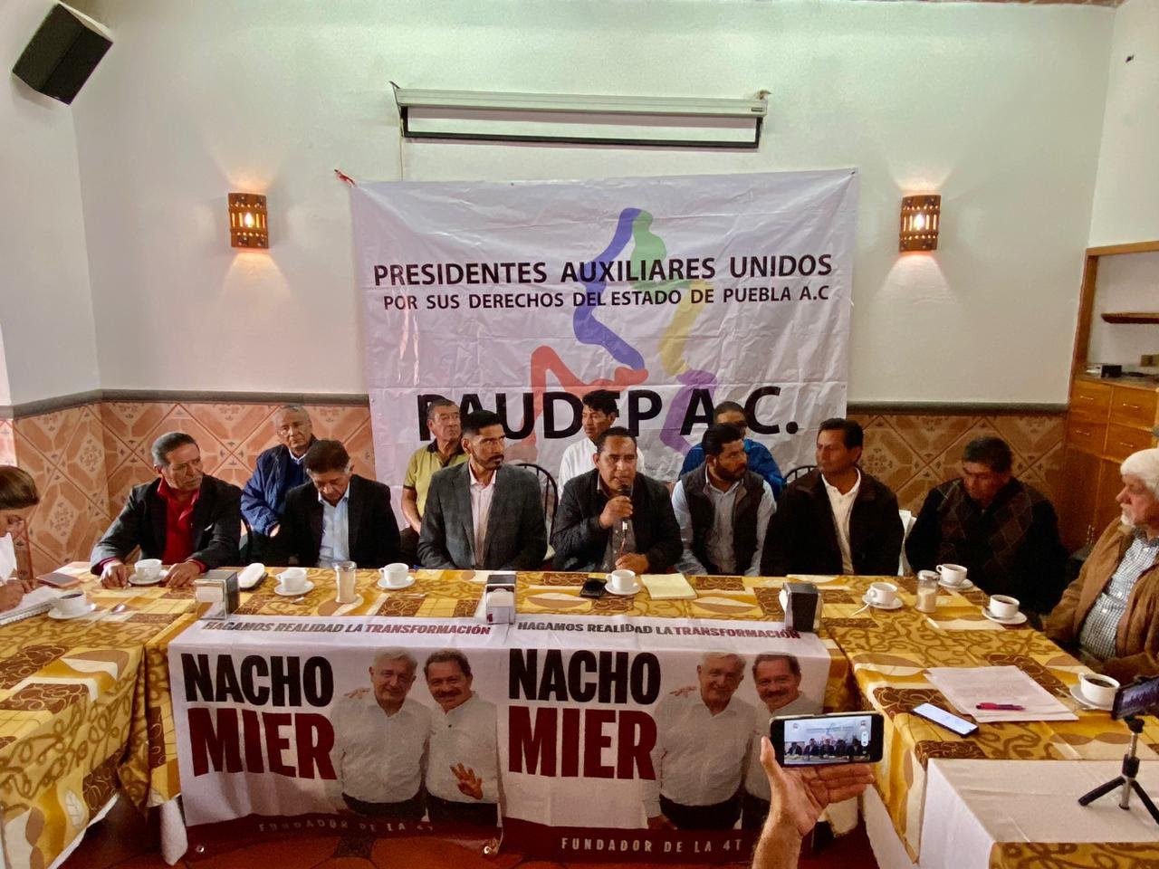 Durante el encuentro con representantes de los medios de comunicación, estuvieron presentes expresidentes auxiliares de Rafael Ávila Camacho, San Juan Tlautla, San Gregorio Zacapechpan, San Matías Cocoyotla, San Diego Cuachayotla, San José Ozumba y San Miguel Papaxtla, entre otros.