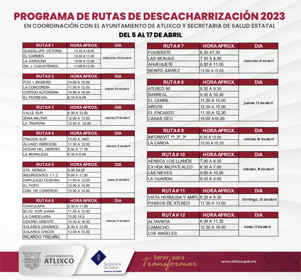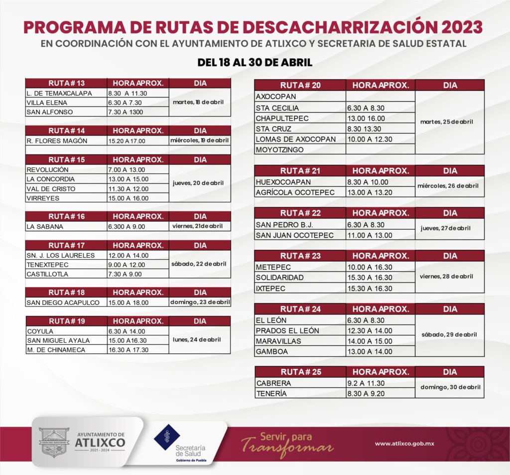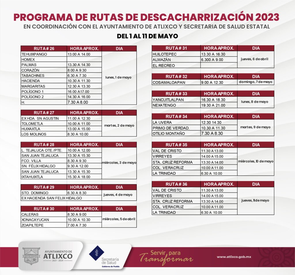 Por su parte, la presidente municipal de Atlixco, Ariadna Ayala invitó a la población a mantenerse al pendiente de las redes sociales oficiales del Ayuntamiento de Atlixco para conocer el calendario de la ruta de “Descacharrización 2023” y continuar limpiando techos y patios, manteniéndolos libres de objetos acumuladores de agua que además de contribuir a la prevención de enfermedades, hace que los espacios luzcan mejor.