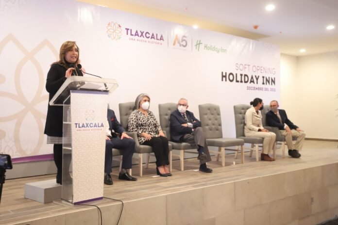 Tlaxcala, México.- La gobernadora Lorena Cuéllar Cisneros encabezó este jueves el Soft Opening del Hotel Holiday Inn, instalado en la comunidad de Atlihuetzía del municipio de Yauhquemehcan, el cual abrirá sus puertas al público el próximo 15 de diciembre, con el objetivo de impulsar el sector turístico y afianzar un mejor recurso económico.
