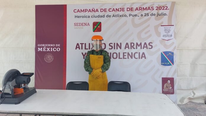 Atlixco, Puebla.- Con el objetivo de prevenir accidentes, así como promover una cultura de la legalidad, la Secretaría de la Defensa Nacional a través del 1er. Regimiento de Caballería Motorizado en coordinación con el Gobierno Municipal presidido por Ariadna Ayala, iniciaron la Campaña de Canje de Armas de Fuego en el municipio de Atlixco.