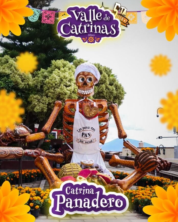 Atlixco, Puebla.- Como parte del Festival Internacional Valle de Catrinas 2025, impulsado por la presidenta de Atlixco Ariadna Ayala, se presenta la obra “La Catrina El Panadero”, un tributo al arte de elaborar pan, uno de los oficios más entrañables y representativos de México.