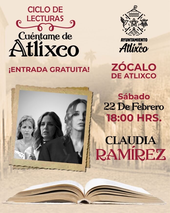Atlixco, Puebla.- Ariadna Ayala, presidenta municipal de Atlixco, anuncia a la próxima artista que dará voz en el primer ciclo de lecturas «Cuéntame de Atlixco” de este 2025. Se trata de la reconocida actriz Claudia Ramírez, quien guiará a los asistentes en un recorrido único.