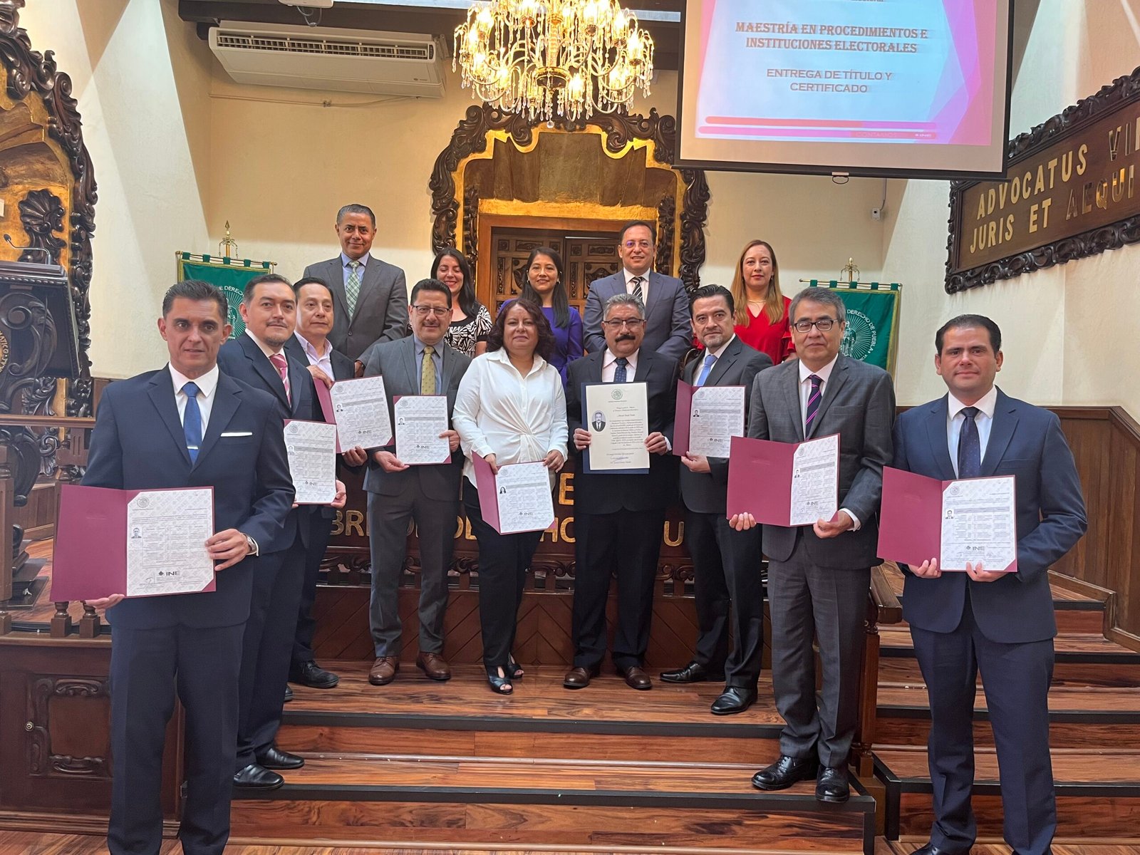 La Junta Local en Puebla entregó títulos y certificados de Maestría en Procesos e Instituciones Electorales a 9 miembros del SPEN