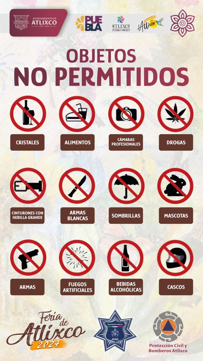 Debes tomar en cuenta que, para garantizar la seguridad, así como vivir una experiencia placentera, los asistentes deberán evitar llevar los siguientes artículos:
