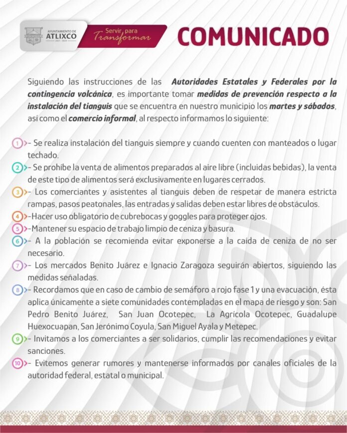 Y es que debido a la constante actividad del volcán Popocatépetl, el ayuntamiento de esta demarcación ha decidió establecer nuevas normas de seguridad sanitaria y protección para aquellos, que como los tianguistas, no quieran suspender sus actividades por la intensa caída de ceniza, pues tendrán que someterse por su bien a medidas para evitar tragedias más adelante,