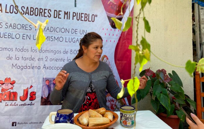 Atlixco, Puebla.- Con el fin de impulsar su economía familiar ante los devastadores efectos de la pandemia del covid-19, mujeres indígenas de la Junta Auxiliar de La Magdalena Axocopan, iniciaron un proyecto gastronómico denominado La Ruta, los sabores de mi pueblo, el cual consiste en brindar una gama de platillos tradicionales de la región, para impulsar su economía.