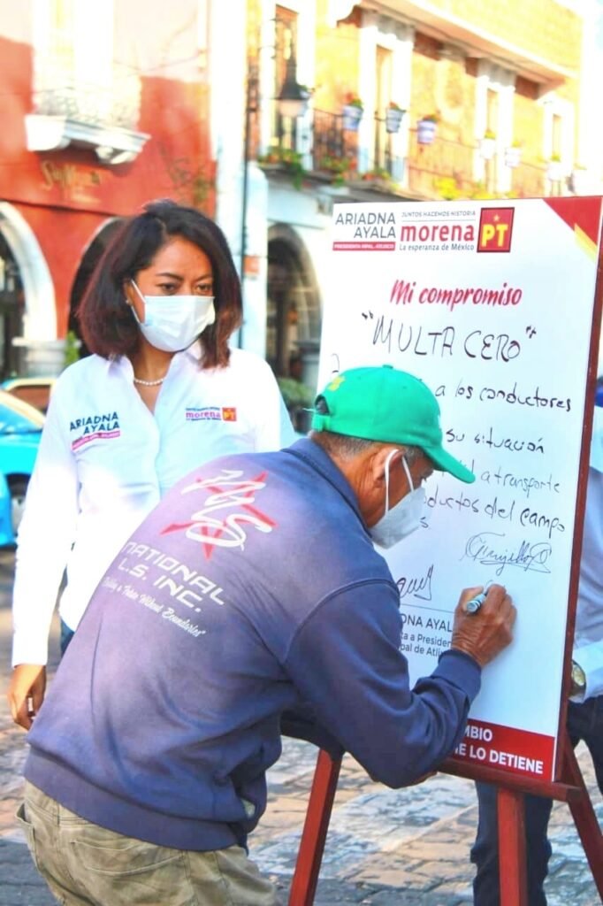 Atlixco, Puebla. – Con la finalidad de apoyar al sector campesino, Ariadna Ayala, aspirante a la alcaldía de Atlixco firmó su compromiso denominado «Multa Cero, para la regularización de trámites vehiculares, mismo que prohíbe la detención de cualquier vehículo local que transporte ganado o productos agrícolas.