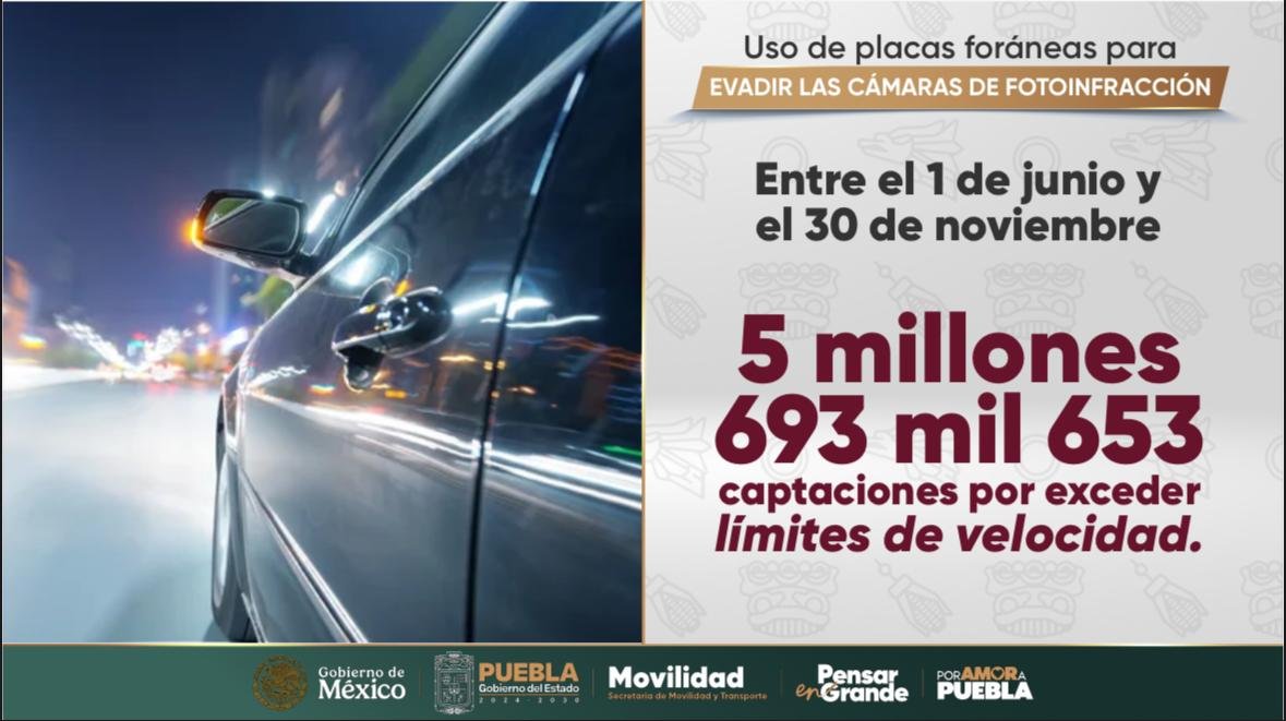 Ciudad de Puebla (Mex) Operativo Monitor Vial para sancionar a placas foráneas, pone en marcha el Gobernador del Estado, Alejandro Armenta, ante más de 5 millones de capacitaciones de vehículos que transitan a exceso de velocidad, de los cuales, más de 4 millones corresponden a matrículas de otro estado.