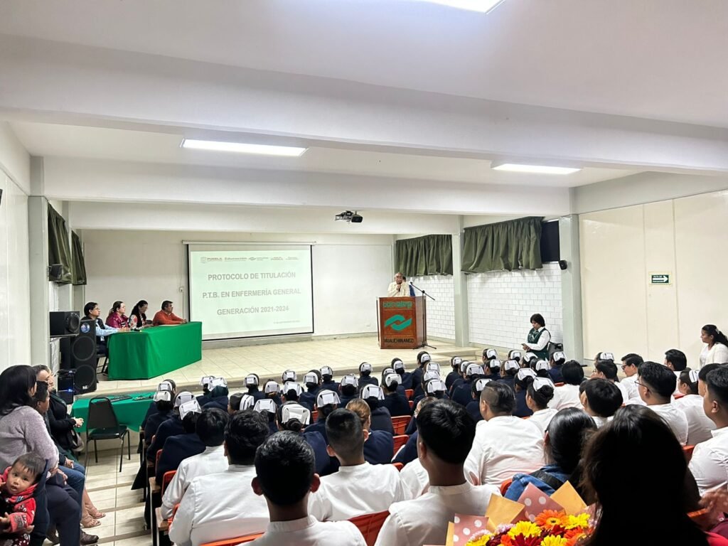 HUAUCHINANGO, Pue.- Con el propósito de ofrecer confianza académica y profesional al alumnado para su bienestar, el Colegio de Educación Profesional Técnica del Estado de Puebla (Conalep), llevó a cabo la Ceremonia de Protocolo para la Titulación de 70 pasantes de la carrera de Enfermería General de la generación 2021-2024 del plantel de este municipio.