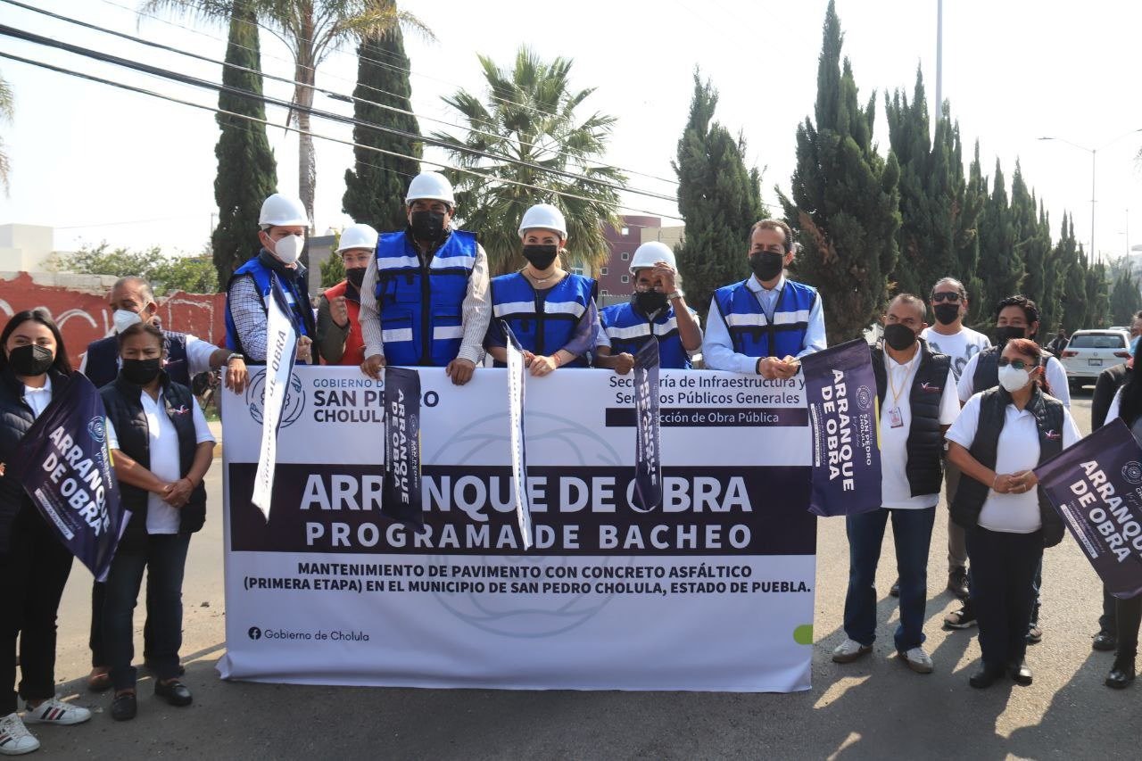 San Pedro Cholula, Pue.- La presidenta municipal, Paola Angon junto con el secretario de Infraestructura y Servicios Públicos Generales, Carlos Carpinteyro, así como el director general del Sosapach, José Luis Carpinteyro, dieron el banderazo de arranque al Programa Intensivo de Bacheo en San Pedro Cholula, en la Junta Auxiliar de Santiago Momoxpan.
