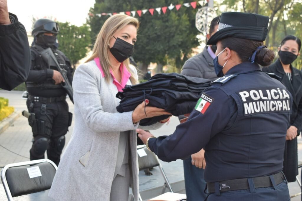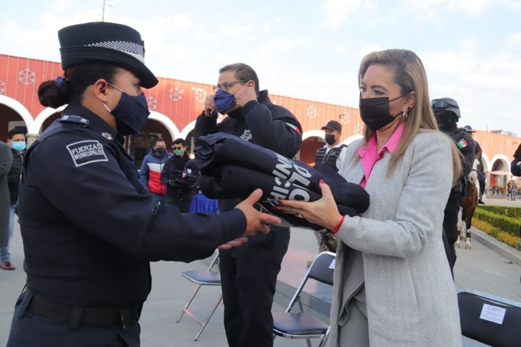 Paola Angon entrega uniformes a policías de San Pedro Cholula