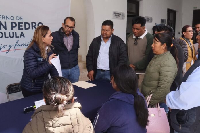San Pedro Cholula, Puebla.- La Presidenta Municipal Paola Angon, junto a servidores públicos de las secretarías y direcciones del Gobierno de Cholula, encabezó la Jornada de Atención Martes Ciudadano “Cholula Va Por Todos”, en la que recibió a vecinos de San Gregorio Zacapechpan para dar seguimiento a las gestiones para la construcción de instalaciones del Telebachillerato Comunitario 40 en dicha junta auxiliar, cuya donación de terreno se aprobó el pasado 14 de noviembre en el sesión del H. Cabildo de San Pedro Cholula.