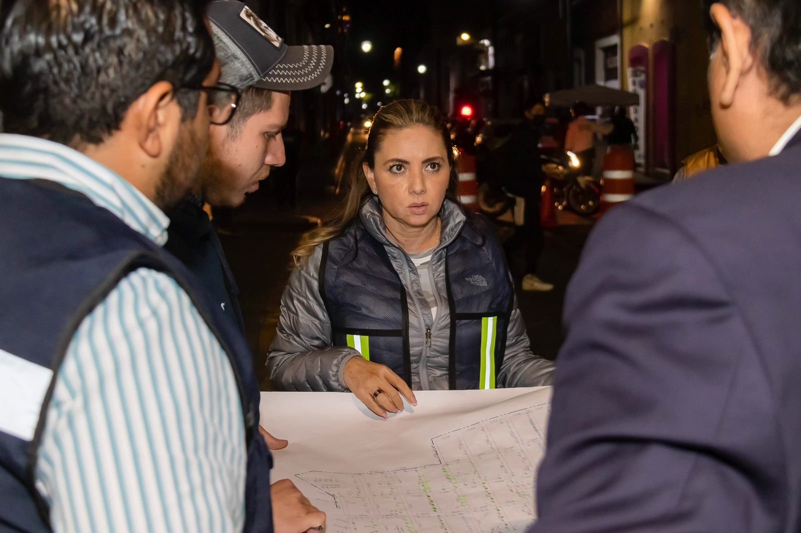 Paola Angon supervisa avances en la modernización del alumbrado público en Cholula