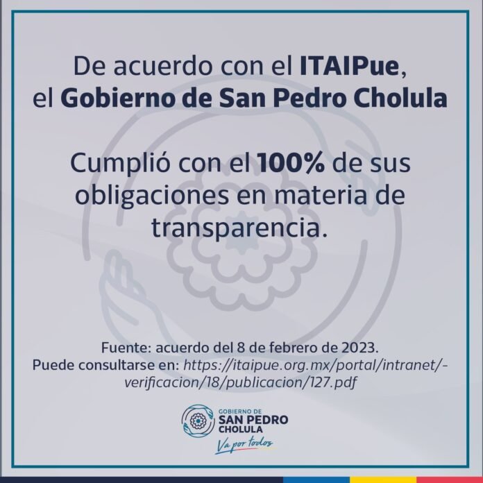De esta forma, el Gobierno de Cholula encabezado por Paola Angon cumple con el compromiso de transparencia en el uso de los recursos públicos, así como en sus obligaciones para que la ciudadanía pueda acceder a información que por Ley debe poder conocer.
