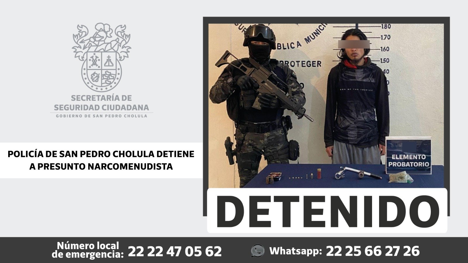 Policía de San Pedro Cholula detiene a presunto narcomenudista