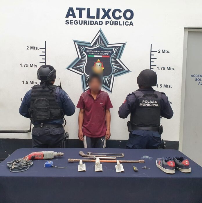 Atlixco, Puebla.- Como resultado del fortalecimiento a la atención oportuna de llamadas de auxilio e incremento de patrullas para atender a las comunidades y juntas auxiliares del municipio de Atlixco, la Secretaría de Seguridad Pública logró el aseguramiento de un masculino que fue descubierto in fraganti cuando robaba una casa habitación en la junta auxiliar de la Magdalena Axocopan.