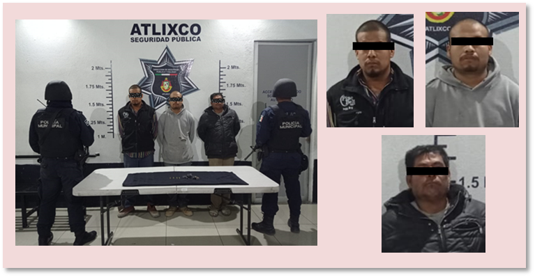 Atlixco, Puebla.- Como parte de las estrategias de Seguridad Pública implementadas en favor del bienestar de la ciudadanía, el 7 de enero, elementos de la Secretaría de Seguridad Pública, a través de su agrupamiento Corredores logró la detención de tres sujetos del sexo masculino, quienes en las inmediaciones de la Junta Auxiliar de La Trinidad Tepango se encontraban en posesión ilegal de un arma  de fuego.