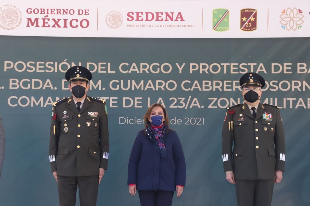En las instalaciones del Primer Regimiento Mecanizado, la mandataria estatal fue testigo del protocolo donde el General de División Diplomado de Estado Mayor, José Alfredo González Rodríguez, comandante de la VI Región Militar, tomó protesta al nuevo mando, en apego al artículo 14 de la Ley Orgánica del Ejército y Fuerza Aérea Mexicanos.