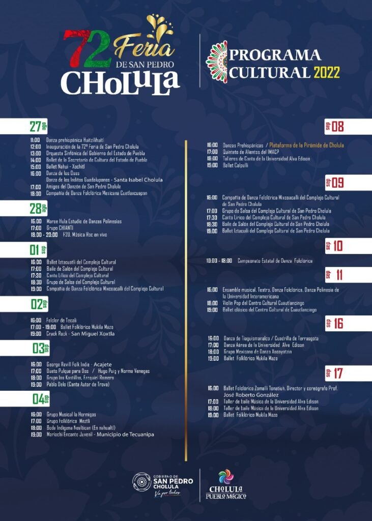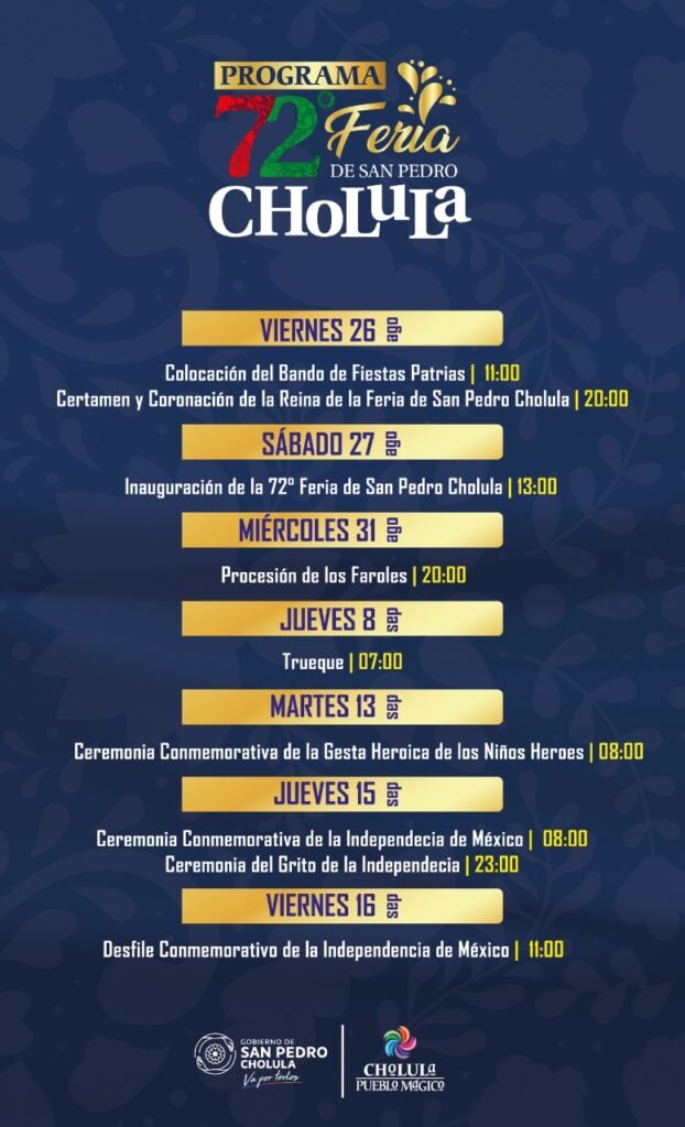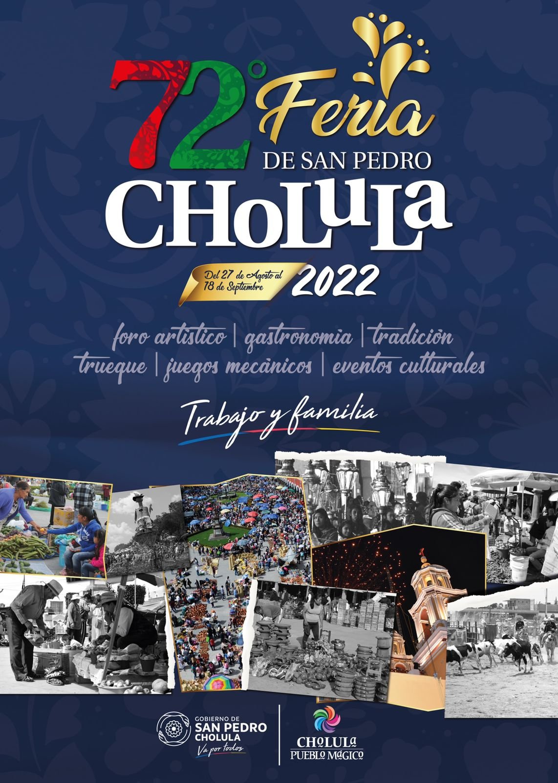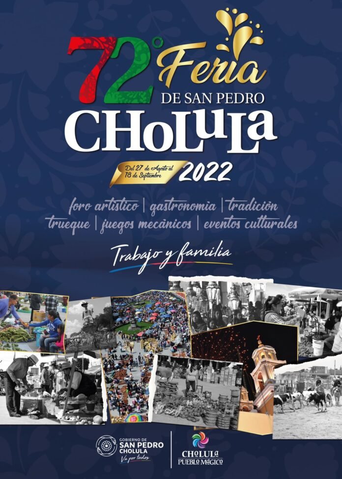 San Pedro Cholula, Pue.- Luego de haber sido suspendida por la contingencia sanitaria como consecuencia de la pandemia de COVID19, este día la presidenta Pola Angon, presentó la edición número 72 de la tradicional Feria de San Pedro Cholula, celebración que del 27 de agosto al 17 de septiembre, espera una afluencia de más de 100 mil personas, así como una derrama superior a los 30 millones de pesos.
