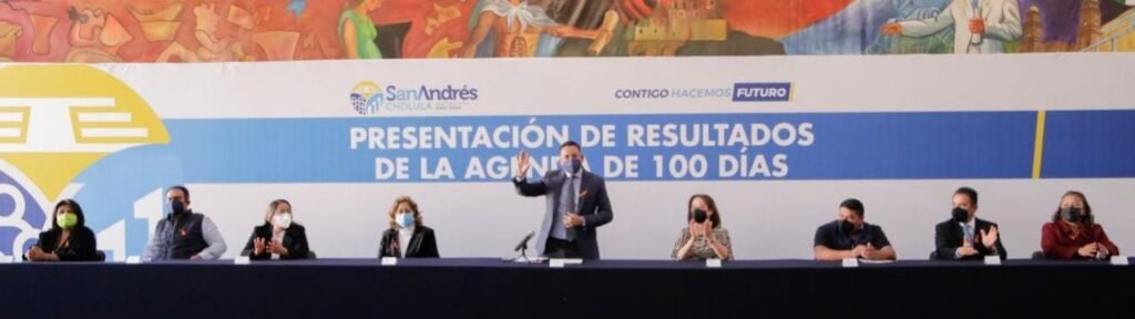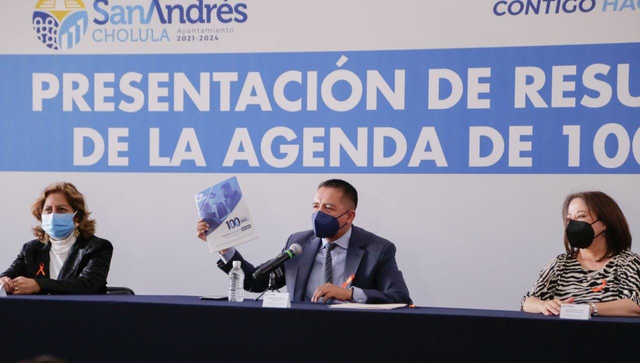 San Andrés Cholula, Puebla.-El presidente municipal, Mundo Tlatehui presentó los resultados de la Agenda de los 100 Primeros Días del Ayuntamiento de San Andrés Cholula, donde aseguró que el objetivo es, y seguirá siendo,cumplir con los compromisos establecidos con las y los sanandreseños.