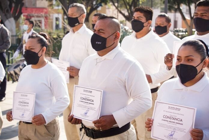 San Andrés Cholula, Puebla.- El presidente municipal de San Andrés Cholula, así como integrantes del cuerpo edilicio, hicieron entrega de reconocimientos a 38 elementos de la Guardia Ciudadana que el sábado pasado finalizaron el primero de cuatro cursos de capacitación programados.