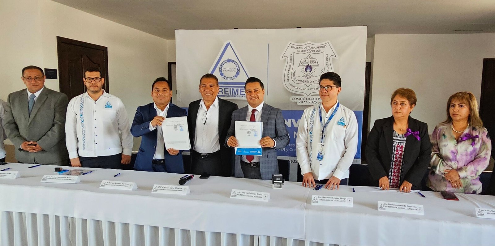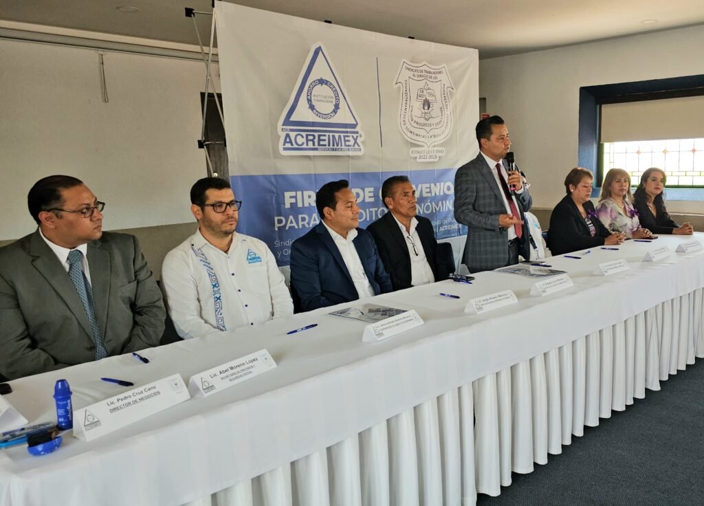 Acompañado de integrantes del Comité Ejecutivo 2022-2025, el líder de la organización sindical signó el “Convenio para otorgamiento de créditos vía nómina” con el Presidente del Consejo de Administración de la Cooperativa Acreimex, Eleazar Cano Mireles; Director General, Sergio Antonio Martínez; Director de Negocios, Pedro Cruz Cano; Coordinador de los Créditos vía nómina, Jesús Alfredo Ramos Moreno y el Gerente de la sucursal Puebla, Heriberto Lescas Morga quienes celebraron que después de dos años se renovara esta importante alianza, refrendando así el compromiso y atención para las y los trabajadores del Gobierno del Estado de Puebla.