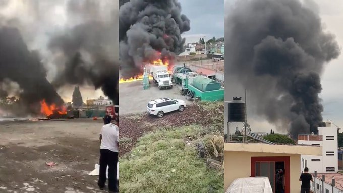 Y es que la explosión alcanzó también a una unidad, la cual se consumió por completo y levantó una enorme columna de humo negro y llamas, movilizando al personal de ese corralón, para tratar de mitigar el fuego, mientras pedían ayuda a bomberos y ambulancias.